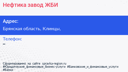 Нефтика, завод ЖБИ по адресу Брянская область, Клинцы, в дальнейшем Организация, размещена в следующих категориях: