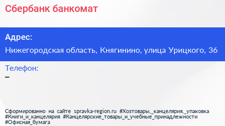 Сбербанк, банкомат по адресу Нижегородская область, Княгинино, улица Урицкого, 36 в дальнейшем Организация, размещена в следующих категориях: