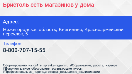 Бристоль, сеть магазинов у дома по адресу Нижегородская область, Княгинино, Красноармейский переулок, 5 в дальнейшем Организация, размещена в следующих категориях: