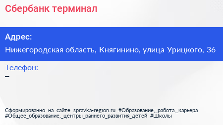 Сбербанк, терминал по адресу Нижегородская область, Княгинино, улица Урицкого, 36 в дальнейшем Организация, размещена в следующих категориях: