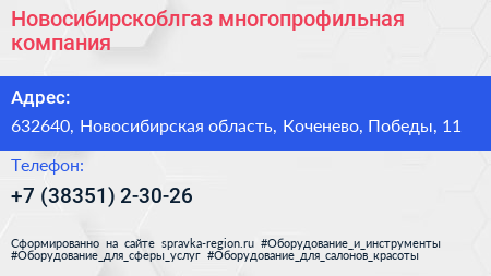 Новосибирскоблгаз, многопрофильная компания по адресу 632640, Новосибирская область, Коченево, Победы, 11 в дальнейшем Организация, размещена в следующих категориях: