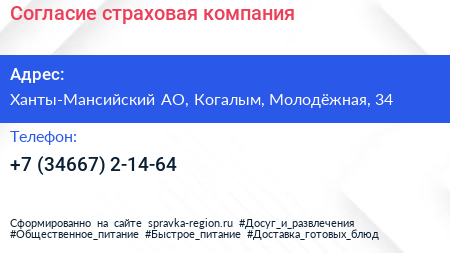 Согласие, страховая компания по адресу Ханты-Мансийский АО, Когалым, Молодёжная, 34 в дальнейшем Организация, размещена в следующих категориях: