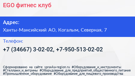 EGO, фитнес-клуб по адресу Ханты-Мансийский АО, Когалым, Северная, 7 в дальнейшем Организация, размещена в следующих категориях: