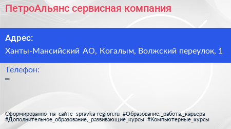 ПетроАльянс, сервисная компания по адресу Ханты-Мансийский АО, Когалым, Волжский переулок, 1 в дальнейшем Организация, размещена в следующих категориях: