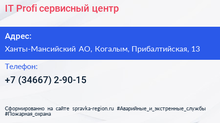 IT-Profi, сервисный центр по адресу Ханты-Мансийский АО, Когалым, Прибалтийская, 13 в дальнейшем Организация, размещена в следующих категориях: