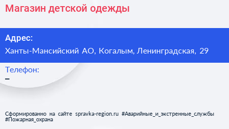 Магазин детской одежды по адресу Ханты-Мансийский АО, Когалым, Ленинградская, 29 в дальнейшем Организация, размещена в следующих категориях: