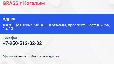 GRASS, г. Когалым по адресу Ханты-Мансийский АО, Когалым, проспект Нефтяников, 1а/13 в дальнейшем Организация, размещена в следующих категориях: