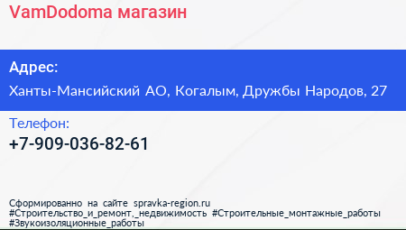 VamDodoma, магазин по адресу Ханты-Мансийский АО, Когалым, Дружбы Народов, 27 в дальнейшем Организация, размещена в следующих категориях: