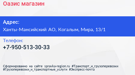Оазис, магазин по адресу Ханты-Мансийский АО, Когалым, Мира, 13/1 в дальнейшем Организация, размещена в следующих категориях: