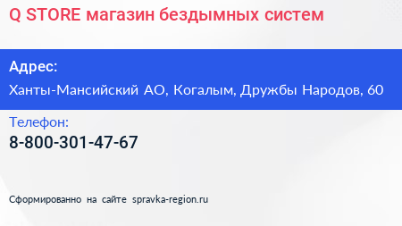 Q STORE, магазин бездымных систем по адресу Ханты-Мансийский АО, Когалым, Дружбы Народов, 60 в дальнейшем Организация, размещена в следующих категориях: