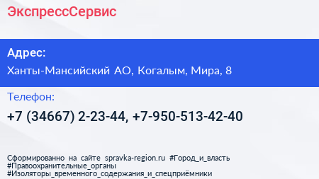ЭкспрессСервис по адресу Ханты-Мансийский АО, Когалым, Мира, 8 в дальнейшем Организация, размещена в следующих категориях: