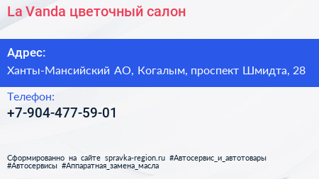 La Vanda, цветочный салон по адресу Ханты-Мансийский АО, Когалым, проспект Шмидта, 28 в дальнейшем Организация, размещена в следующих категориях: