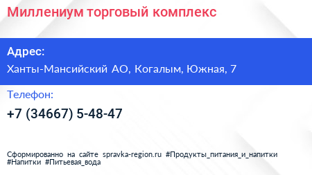 Миллениум, торговый комплекс по адресу Ханты-Мансийский АО, Когалым, Южная, 7 в дальнейшем Организация, размещена в следующих категориях: