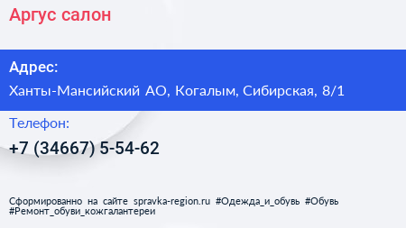 Аргус, салон по адресу Ханты-Мансийский АО, Когалым, Сибирская, 8/1 в дальнейшем Организация, размещена в следующих категориях:
