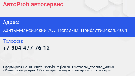 АвтоProfi, автосервис по адресу Ханты-Мансийский АО, Когалым, Прибалтийская, 40/1 в дальнейшем Организация, размещена в следующих категориях: