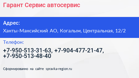 Гарант-Сервис, автосервис по адресу Ханты-Мансийский АО, Когалым, Центральная, 12/2 в дальнейшем Организация, размещена в следующих категориях: