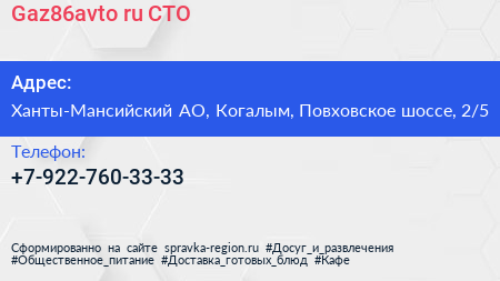 Gaz86avto.ru, СТО по адресу Ханты-Мансийский АО, Когалым, Повховское шоссе, 2/5 в дальнейшем Организация, размещена в следующих категориях: