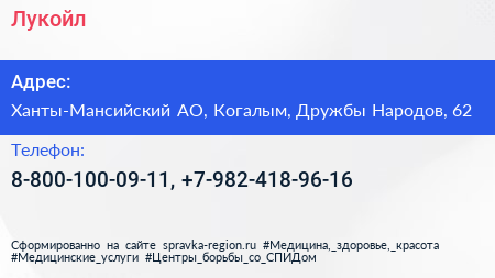 Лукойл по адресу Ханты-Мансийский АО, Когалым, Дружбы Народов, 62 в дальнейшем Организация, размещена в следующих категориях: