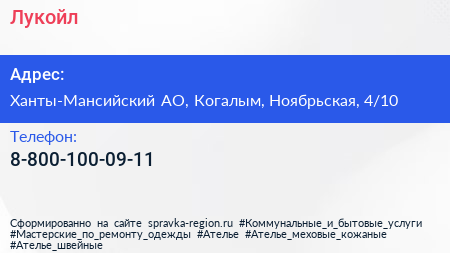 Лукойл по адресу Ханты-Мансийский АО, Когалым, Ноябрьская, 4/10 в дальнейшем Организация, размещена в следующих категориях:
