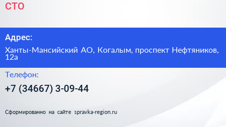 СТО по адресу Ханты-Мансийский АО, Когалым, проспект Нефтяников, 12а в дальнейшем Организация, размещена в следующих категориях: