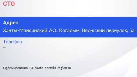 СТО по адресу Ханты-Мансийский АО, Когалым, Волжский переулок, 5а в дальнейшем Организация, размещена в следующих категориях: