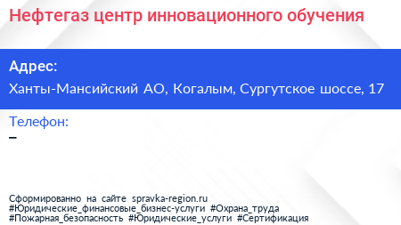 Нефтегаз, центр инновационного обучения по адресу Ханты-Мансийский АО, Когалым, Сургутское шоссе, 17 в дальнейшем Организация, размещена в следующих категориях: