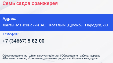 Семь садов, оранжерея по адресу Ханты-Мансийский АО, Когалым, Дружбы Народов, 60 в дальнейшем Организация, размещена в следующих категориях: