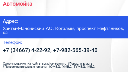 Автомойка по адресу Ханты-Мансийский АО, Когалым, проспект Нефтяников, 6а в дальнейшем Организация, размещена в следующих категориях: