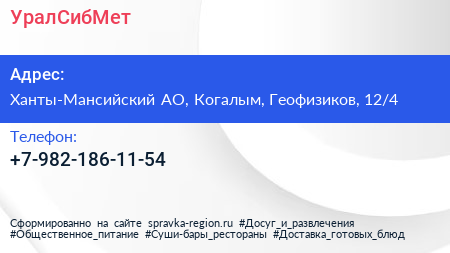 УралСибМет по адресу Ханты-Мансийский АО, Когалым, Геофизиков, 12/4 в дальнейшем Организация, размещена в следующих категориях: