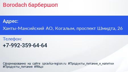 Borodach, барбершоп по адресу Ханты-Мансийский АО, Когалым, проспект Шмидта, 26 в дальнейшем Организация, размещена в следующих категориях: