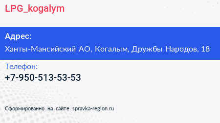 LPG_kogalym по адресу Ханты-Мансийский АО, Когалым, Дружбы Народов, 18 в дальнейшем Организация, размещена в следующих категориях: