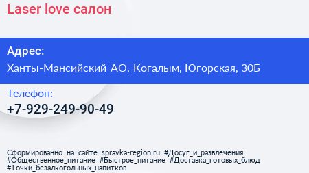 Laser love, салон по адресу Ханты-Мансийский АО, Когалым, Югорская, 30Б в дальнейшем Организация, размещена в следующих категориях: