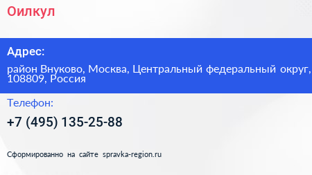Оилкул по адресу район Внуково, Москва, Центральный федеральный округ, 108809, Россия в дальнейшем Организация, размещена в следующих категориях: