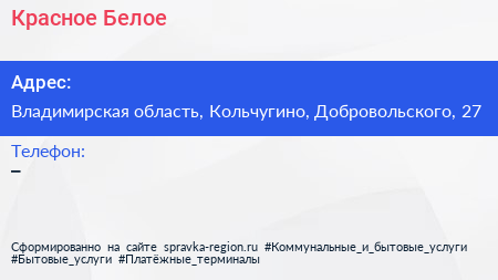 Красное & Белое по адресу Владимирская область, Кольчугино, Добровольского, 27 в дальнейшем Организация, размещена в следующих категориях: