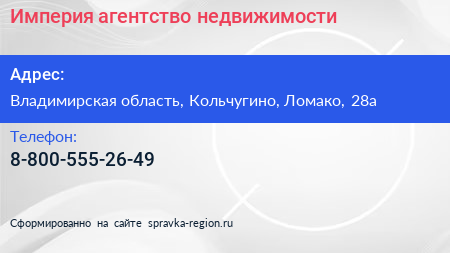 Империя, агентство недвижимости по адресу Владимирская область, Кольчугино, Ломако, 28а в дальнейшем Организация, размещена в следующих категориях: