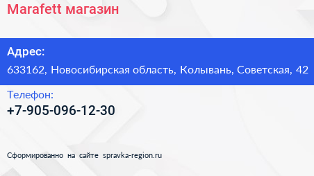 Marafett, магазин по адресу 633162, Новосибирская область, Колывань, Советская, 42 в дальнейшем Организация, размещена в следующих категориях: