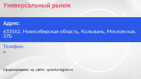 Универсальный рынок по адресу 633162, Новосибирская область, Колывань, Московская, 37Б в дальнейшем Организация, размещена в следующих категориях:
