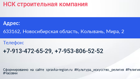 НСК, строительная компания по адресу 633162, Новосибирская область, Колывань, Мира, 2 в дальнейшем Организация, размещена в следующих категориях: