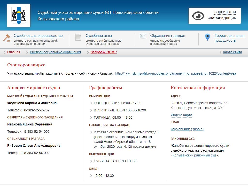 Мировые судьи Колыванского района по адресу 633162, Новосибирская область, Колывань, Московская, 39 в дальнейшем Организация, размещена в следующих категориях: