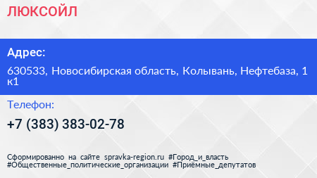 ЛЮКСОЙЛ по адресу 630533, Новосибирская область, Колывань, Нефтебаза, 1 к1 в дальнейшем Организация, размещена в следующих категориях: