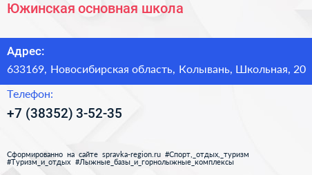 Южинская основная школа по адресу 633169, Новосибирская область, Колывань, Школьная, 20 в дальнейшем Организация, размещена в следующих категориях: