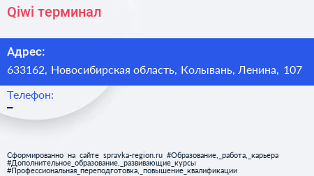 Qiwi, терминал по адресу 633162, Новосибирская область, Колывань, Ленина, 107 в дальнейшем Организация, размещена в следующих категориях: