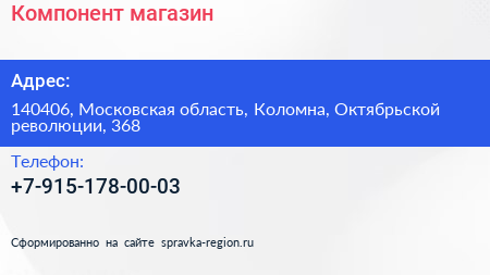 Компонент, магазин по адресу 140406, Московская область, Коломна, Октябрьской революции, 368 в дальнейшем Организация, размещена в следующих категориях: