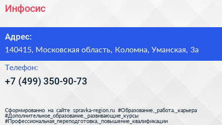Инфосис по адресу 140415, Московская область, Коломна, Уманская, 3а в дальнейшем Организация, размещена в следующих категориях: