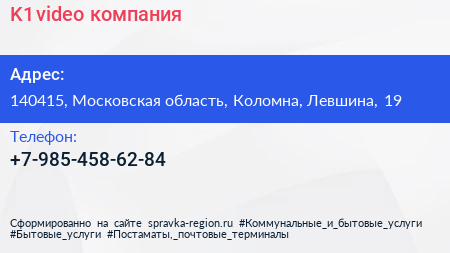 K1 video, компания по адресу 140415, Московская область, Коломна, Левшина, 19 в дальнейшем Организация, размещена в следующих категориях: