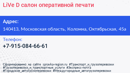 LiVe-D, салон оперативной печати по адресу 140413, Московская область, Коломна, Октябрьская, 45а в дальнейшем Организация, размещена в следующих категориях: