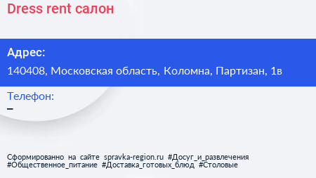Dress rent, салон по адресу 140408, Московская область, Коломна, Партизан, 1в в дальнейшем Организация, размещена в следующих категориях: