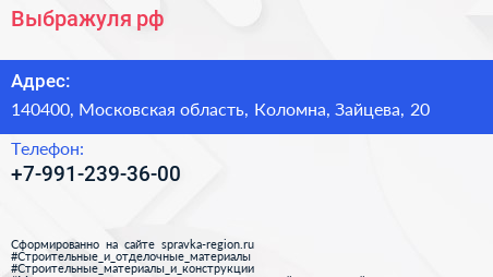Выбражуля.рф по адресу 140400, Московская область, Коломна, Зайцева, 20 в дальнейшем Организация, размещена в следующих категориях: