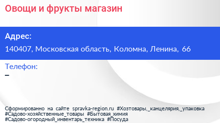 Овощи и фрукты, магазин по адресу 140407, Московская область, Коломна, Ленина, 66 в дальнейшем Организация, размещена в следующих категориях: