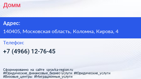 Домм по адресу 140405, Московская область, Коломна, Кирова, 4 в дальнейшем Организация, размещена в следующих категориях: